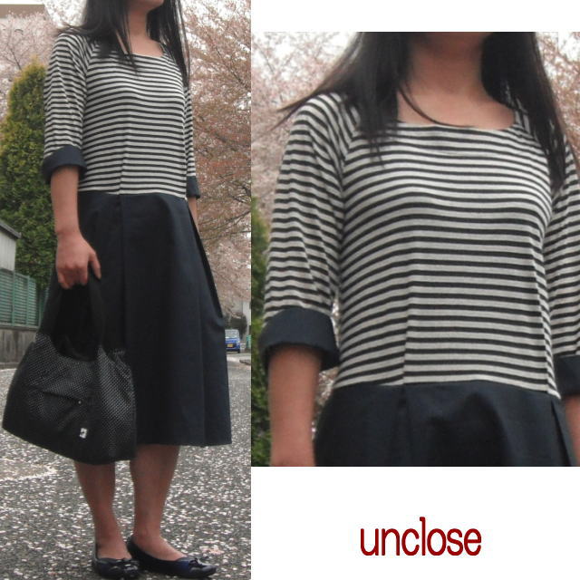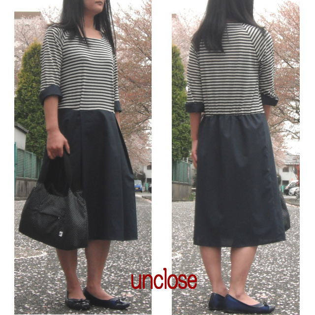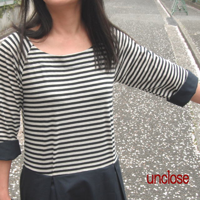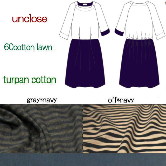 トップス部分がトルファンボーダー天竺、スカート部分が60コットンローン