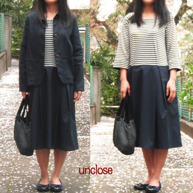 フレンチリネンのショールカラージャケットを合わせてみました。